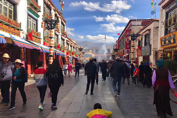 游覽充滿濃郁虔誠信仰的圣城拉薩,前往世界上海拔最高的宮堡式建筑群布達拉宮(游覽時間約2.5小時),公元七世紀松贊干布為迎娶文成公主而興建,整座宮殿有鮮明的藏式風格,依山而建,氣勢雄偉,紅宮里面珍藏有歷史悠久的金質靈塔和珍貴的壁畫、唐卡、佛像,白宮是西藏歷代達賴喇嘛起居、誦經及處理行政事務的場所。午餐后,游覽參觀建于吐蕃王朝時期的最早的佛堂-大昭寺(游覽時間約1.5小時),寺前終日香火繚繞,信徒們虔誠的叩拜在門前的青石板上留下了等身長頭的深深印記,萬盞酥油燈長明,留下了歲月和朝圣者的痕跡。游覽結束后,游客自行游覽八角街,感受一下西藏的人文風土,瀏覽民族特色和異域風情的手工制品。(此天行程寬松,全程游覽時間在6小時左右)