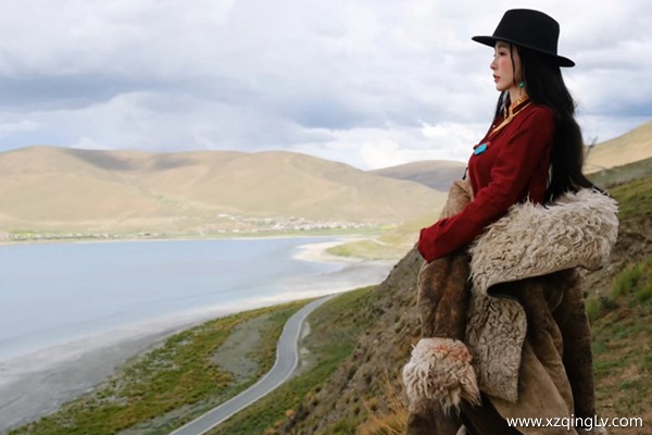 在羊湖,詩嘉還贈送我和媽媽一人一套價值299的藏裝旅拍,真的超好看!